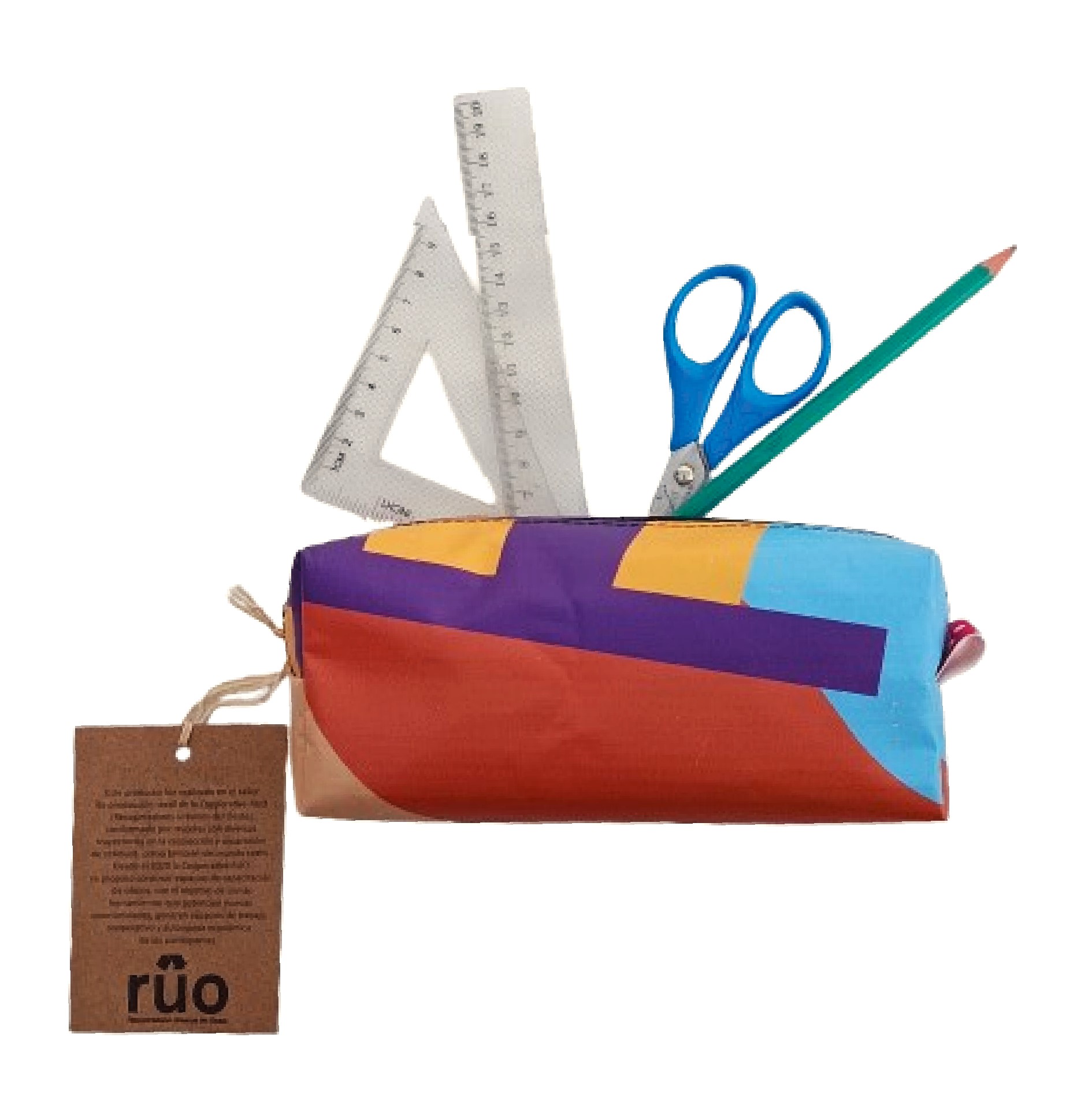 Confeccionada en tela plástica reciclada, combina durabilidad, reutilización y diseño funcional, ideal para acompañar rutinas escolares, laborales o creativas.
