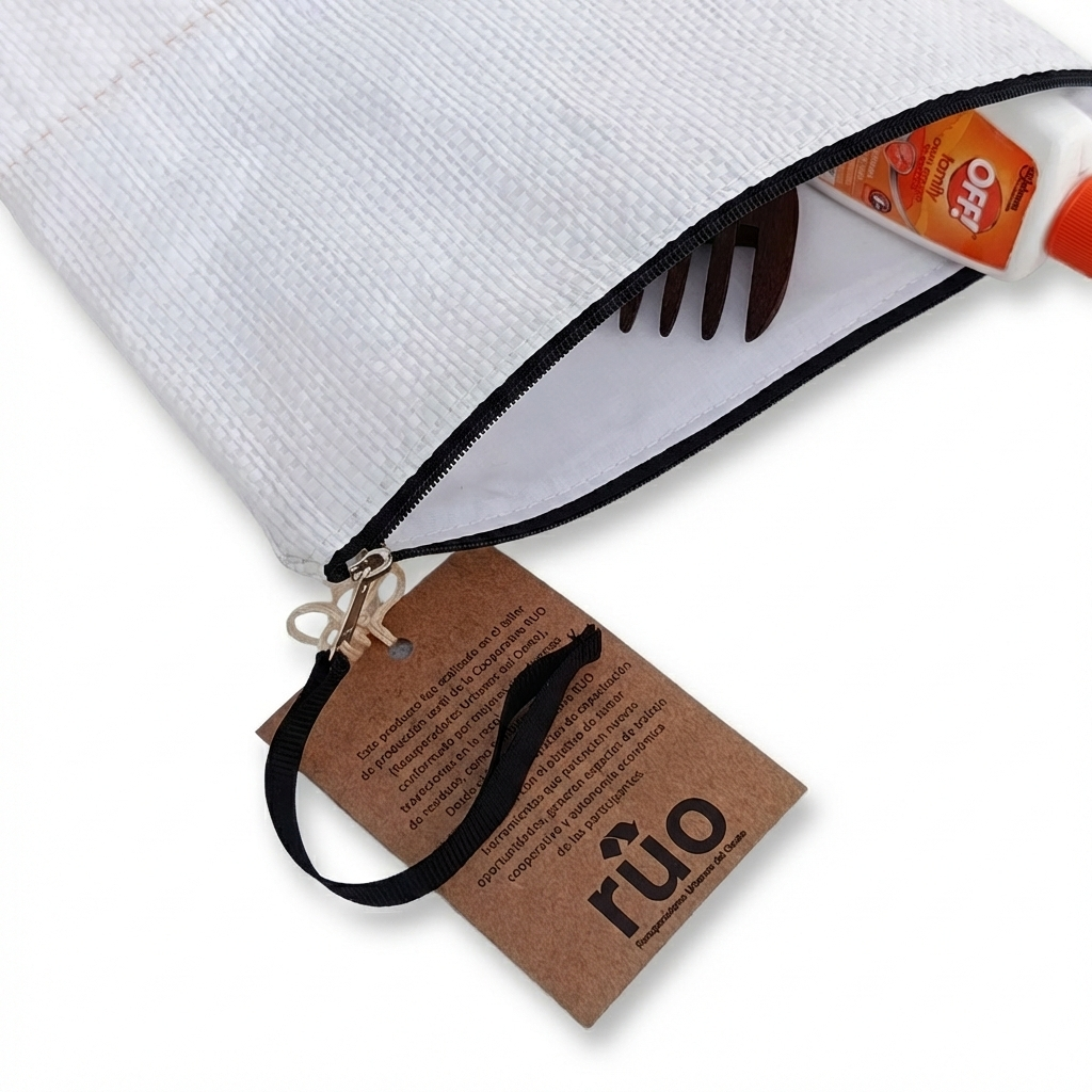 Este necessaire reciclado es mucho más que un accesorio: es una solución práctica para el día a día y, al mismo tiempo, una forma concreta de apostar por la economía circular y el trabajo cooperativo.